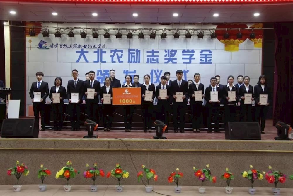 2018年12月13日下午,学院在西校区大学生活动中心隆重举行“2017-2018学年度大北农励志奖学金”颁发仪式。大北农集团甘宁区陇中事业部直供体系总经理张陇峰,甘宁区行政经理毕东亚,直供体系河西区经理高小光,临夏区经理王小云,学院副院长王治仓及学生工作处、团委等部门负责人出席本次活动,500多名师生代表参加活动。颁发仪式由学生工作处处长巩立超主持。