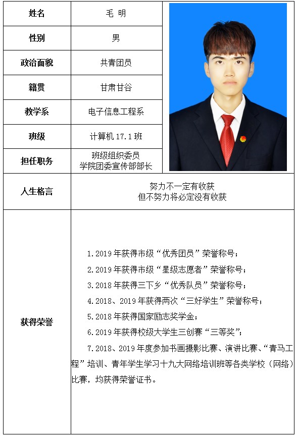 2020届甘肃省高等院校优秀毕业生公示名单