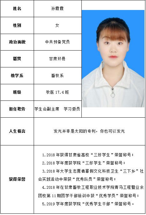 3月25日,甘肃省教育厅发布了《甘肃省教育厅关于公布2020届甘肃省优秀大学毕业生及2019年度甘肃省三好学生评选结果的通知》,经系部推荐、学院审核、省教育厅审批,认定我院孙霞霞等17名学生为2020届甘肃省优秀大学毕业生。