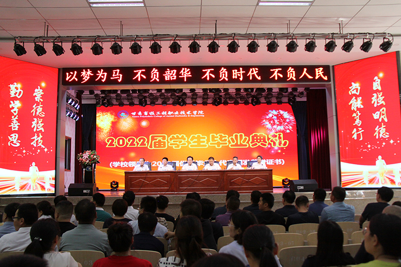6月28日,学校在大礼堂隆重举行2022届学生毕业典礼。党委书记、校长杨孝列,党委委员、副校长王祎才、张登辉、王治仓、王海涛,党委委员、纪委书记、监察专员张海军出席典礼。毕业典礼由王祎才主持。