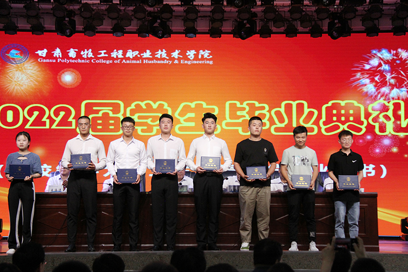 张登辉宣读学校关于2022届毕业生情况的报告,王治仓宣布关于表彰2022届省级优秀毕业生和学校优秀毕业生的决定,学校领导为毕业生代表颁发毕业证书、为优秀毕业生代表颁发荣誉证书,机械工程学院机制2019级1班包爱江同学代表毕业生发言,兽医科技学院动医2021级7班张云斐同学代表在校生发言,经贸与人文学院副院长段晓静代表教师发言。