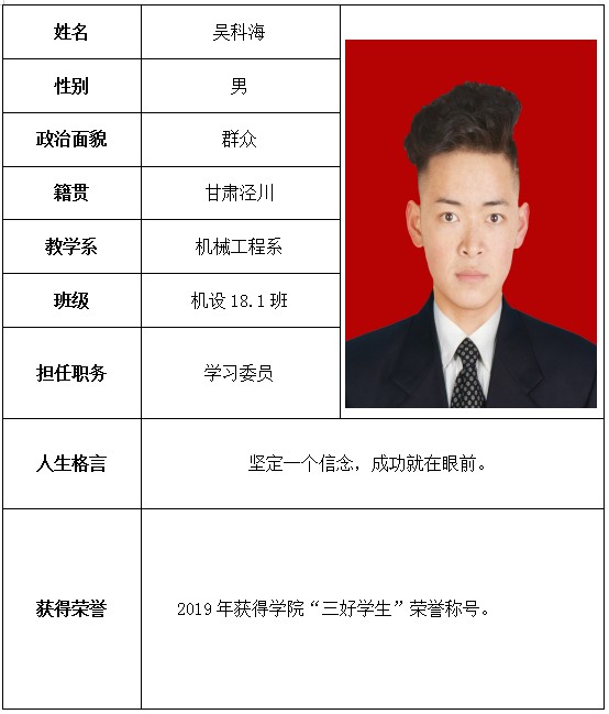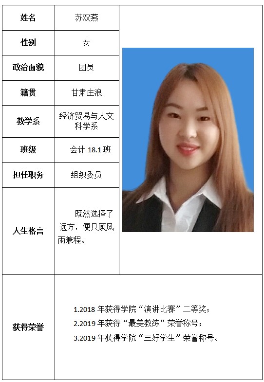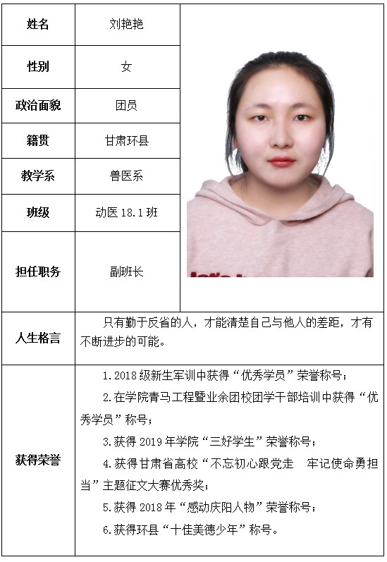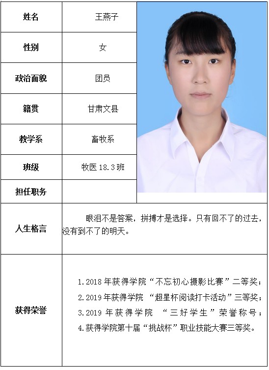 根据《财政部 教育部 人力资源社会保障部关于提前下达2019年学生资助补助经费预算的通知》精神,依据《学生资助资金管理办法》,在本人申请、系部推荐、学院审核、教育厅审批,2019年度“国家奖学金”获奖学生名单如下:附件:个人简介学生工作处 2020年4月22日