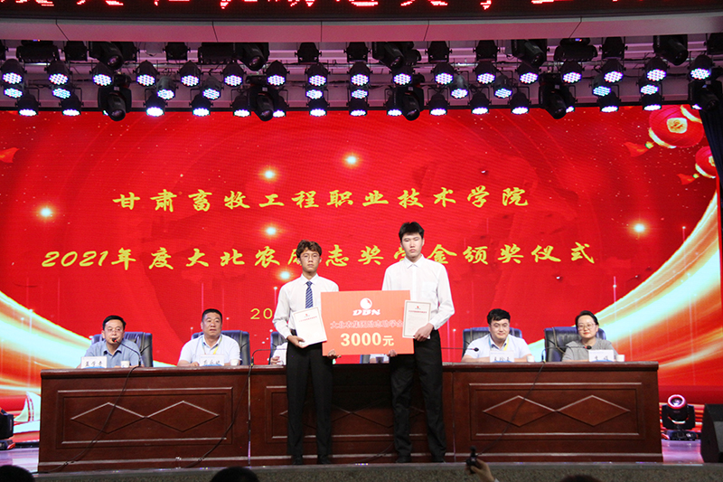 6月27日下午,大北农励志奖学金颁发仪式在大礼堂隆重举行。大北农集团甘宁区创业人力中心总经理毕东亚,大北农集团反刍武威特区总经理苟永斌,大北农集团预动武威区经理王珍玉,学校党委委员、副校长王治仓出席会议并讲话。颁发仪式由学生工作部负责人主持。