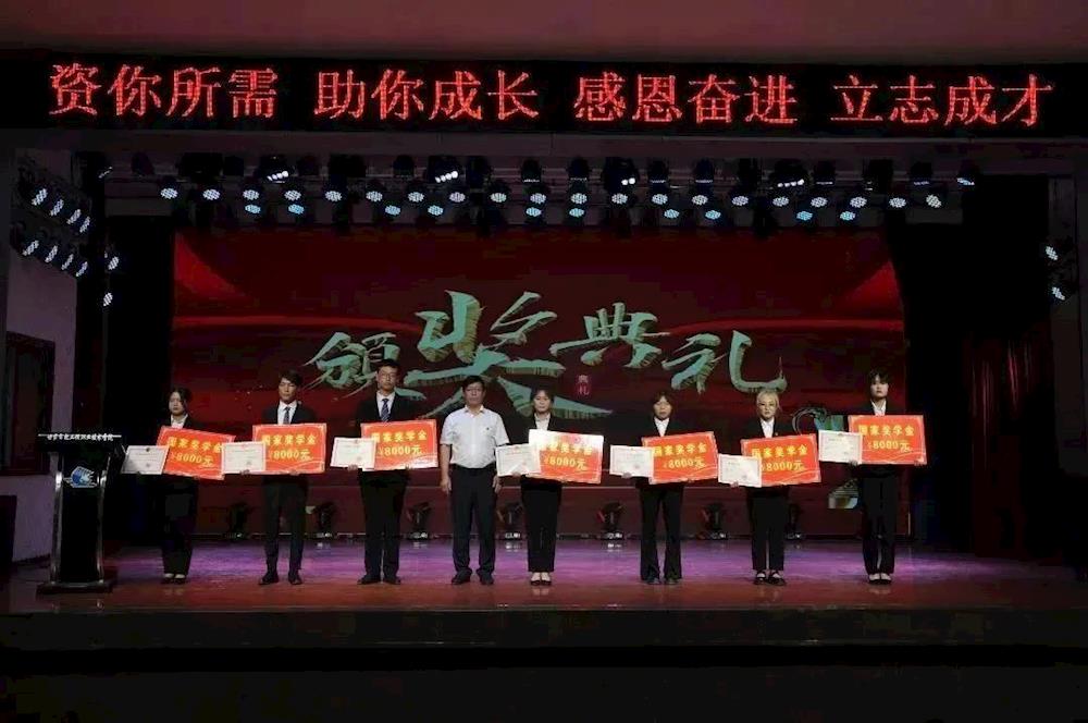 参会领导为获得国家奖学金、国家励志奖学金、国家助学金、何康奖学金的学生颁发证书。