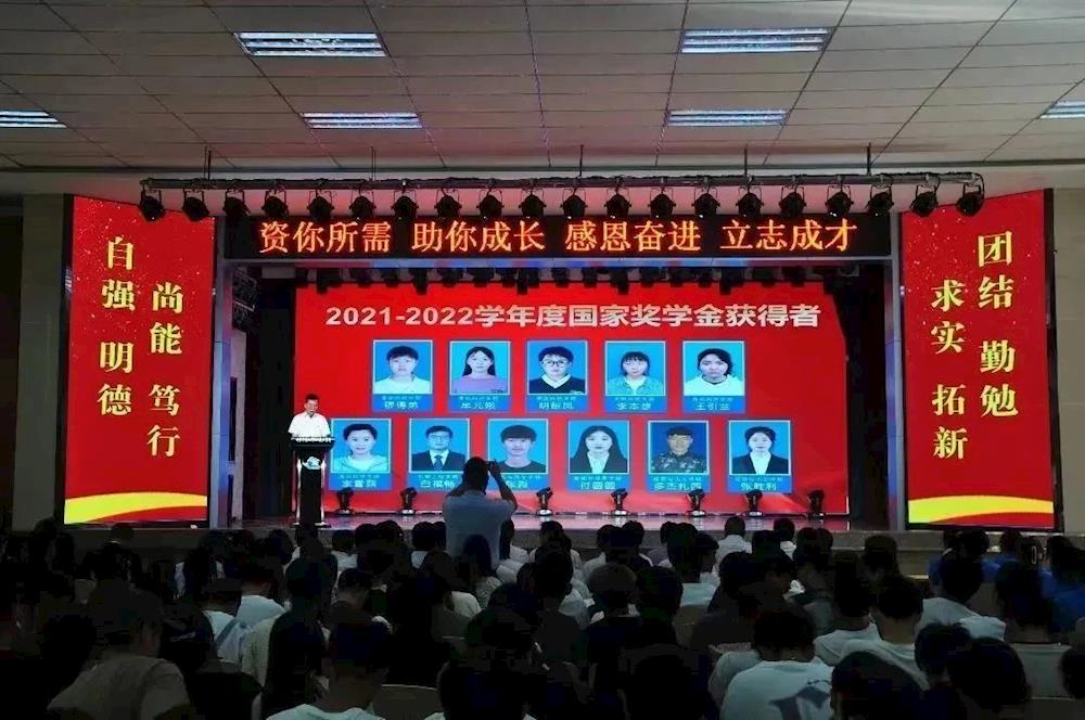 国家奖学金获得者代表牧医21.14班明耀凤、国家励志奖学金获得者代表农机21.1班李志强、国家助学金获得者代表婴幼儿托育22.3班冯雯雯同学发言。